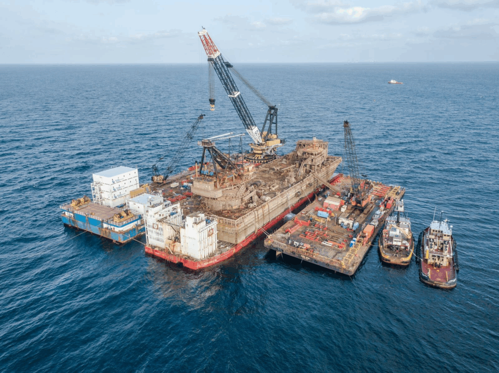 Currently, Resolve Marine is engaged in a groundbreaking offshore wind project in the United Kingdom involving turbine blade failures. The project features innovative techniques like controlled explosive cutting of damaged turbines, developed in collaboration with OEMs. This work highlights their role in advancing offshore wind salvage and setting new industry standards.