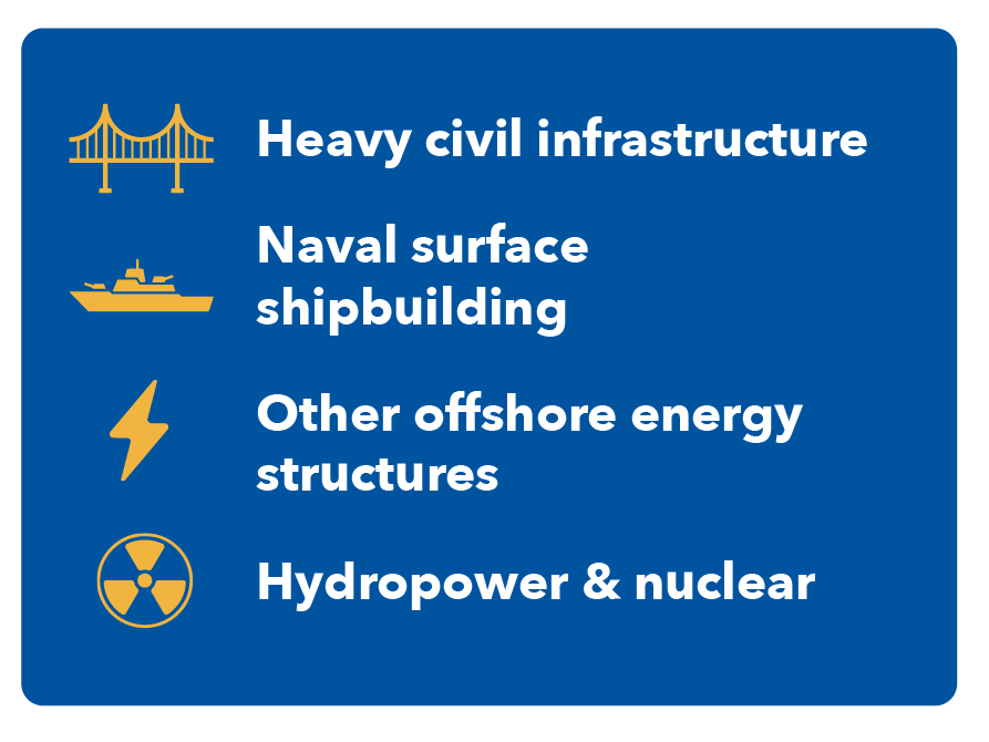 The industrial capabilities required to build offshore wind projects extend well beyond the renewable energy sector. Producing turbine foundations, towers, and offshore structures requires specialized heavy steel manufacturing, thick plate rolling, and advanced fabrication techniques that are also essential for many other forms of national infrastructure.